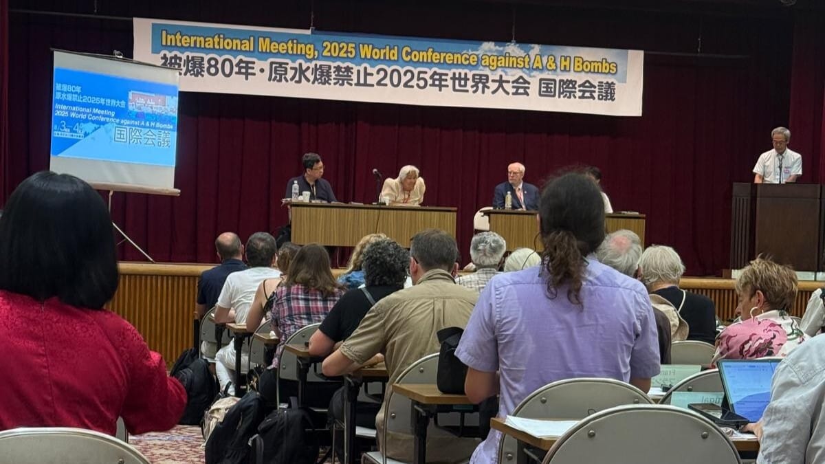 A meeting of international delegates from the 2025 World Conference against A & H Bombs that I attended, in Hiroshima, Japan
